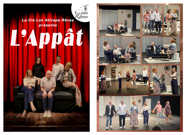 Et à nouveau les Attrape-Rêves montent sur scène ; une troupe resserrée pour coller au registre de la comédie du type vaudeville ! Mais un vaudeville déconstruit, déjanté, sans porte qui claquent ni amant caché dans un placard !